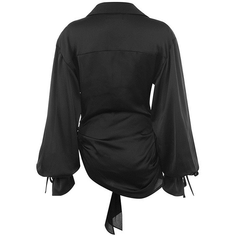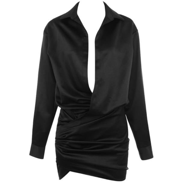 Black Satin Drape Dress